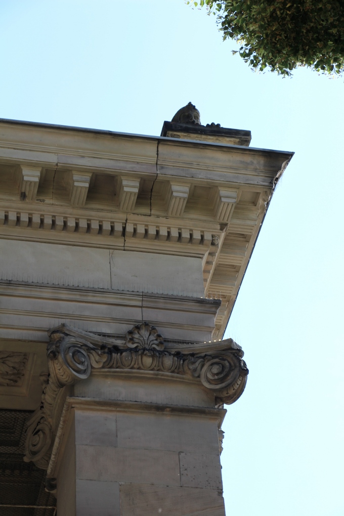 Il reprend le plan classique de la colonnade, du fronton avec représentation de la justice et de la coupole.